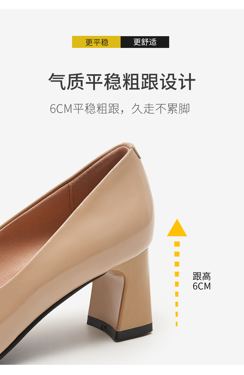 淺口高跟鞋女春夏鞋子2021新款英倫小皮鞋一腳蹬方頭真皮粗跟單鞋